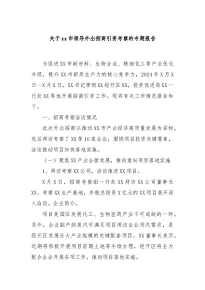 / 【七哥公文】2024年:关于xx市领导外出招商引资考察的专题报告+更多免费公文+VX:QiGeGongWen2024