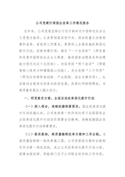 / 【七哥公文】2024年:公司党建引领国企改革工作情况报告+更多免费公文+VX:QiGeGongWen2024