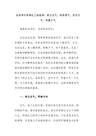 【七哥公文】2024年:在秋季开学典礼上的致辞:树立志气、培养勇气、坚守正气、积蓄才气+更多免费公文+VX:QiGeGongWen2024