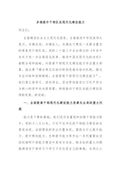 【七哥公文】2024年:多维提升干部队伍现代化建设能力+更多免费公文+VX:QiGeGongWen2024