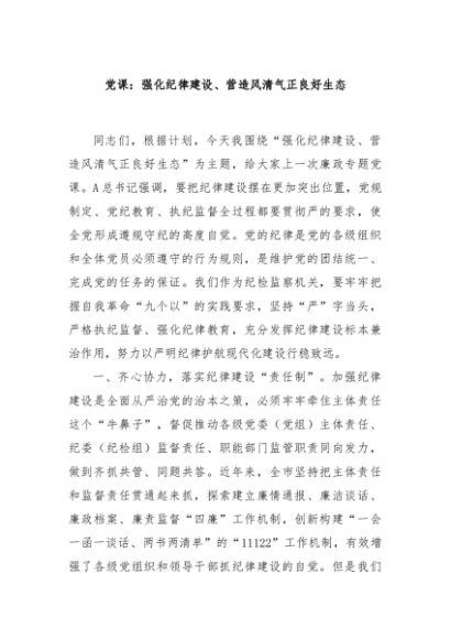 / 【七哥公文】2024年:党课:强化纪律建设、营造风清气正良好生态+更多免费公文+VX:QiGeGongWen2024