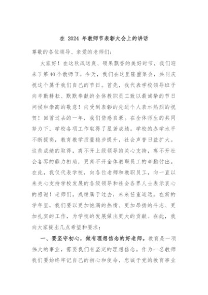 【七哥公文】2024年:在 2024 年教师节表彰大会上的讲话+更多免费公文+VX:QiGeGongWen2024