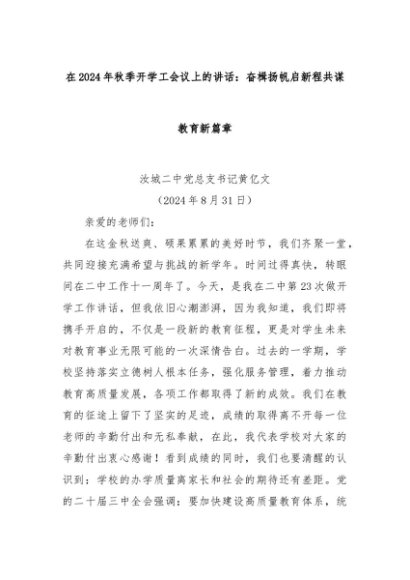 【七哥公文】2024年:在2024年秋季开学工会议上的讲话:奋楫扬帆启新程共谋教育新篇章+更多免费公文+VX:QiGeGongWen2024