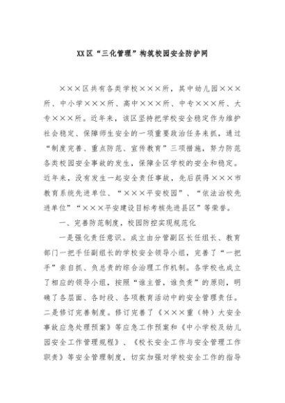 / 【七哥公文】2024年:XX区“三化管理”构筑校园安全防护网+更多免费公文+VX:QiGeGongWen2024