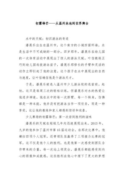 / 【七哥公文】2024年:初露锋芒——从温州泳池到世界舞台+更多免费公文+VX:QiGeGongWen2024