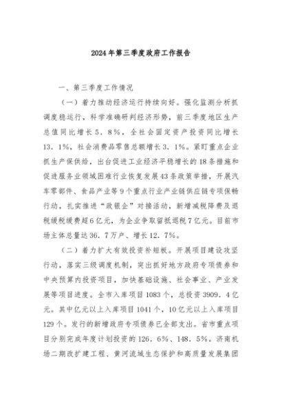 【七哥公文】2024年:2024年第三季度政府工作报告+更多免费公文+VX:QiGeGongWen2024