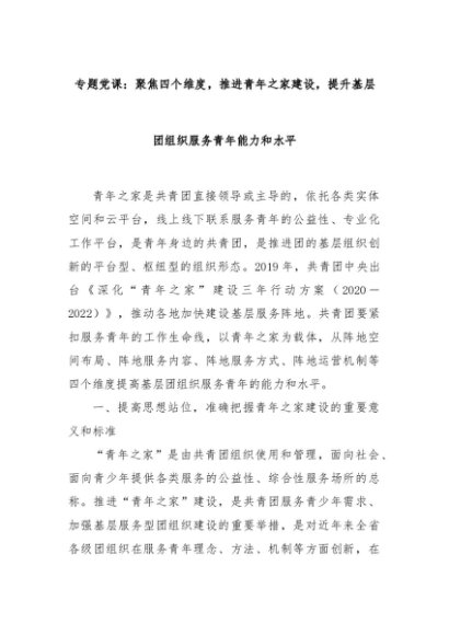 【七哥公文】2024年:专题党课:聚焦四个维度,推进青年之家建设,提升基层团组织服务青年能力和水平+更多免费公文+VX:QiGeGongWen2024