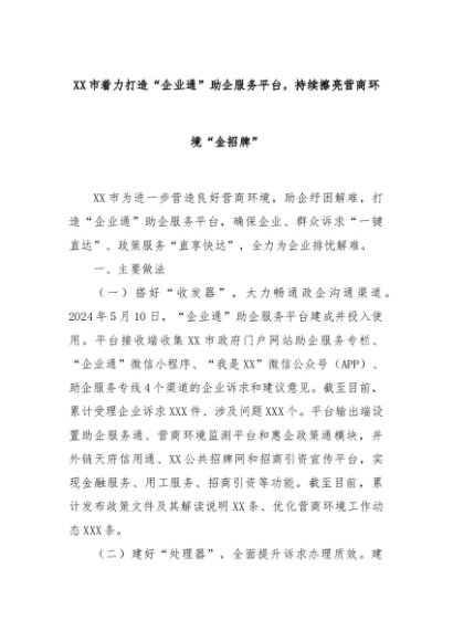 【七哥公文】2024年:XX市着力打造“企业通”助企服务平台,持续擦亮营商环境“金招牌”+更多免费公文+VX:QiGeGongWen2024