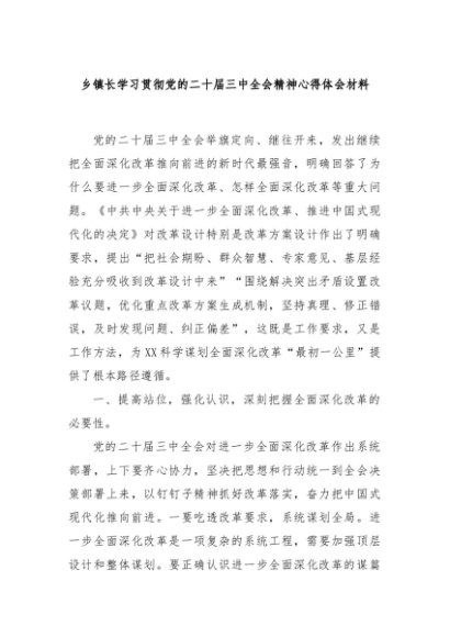 【七哥公文】2024年:乡镇长学习贯彻党的二十届三中全会精神心得体会材料+更多免费公文+VX:QiGeGongWen2024