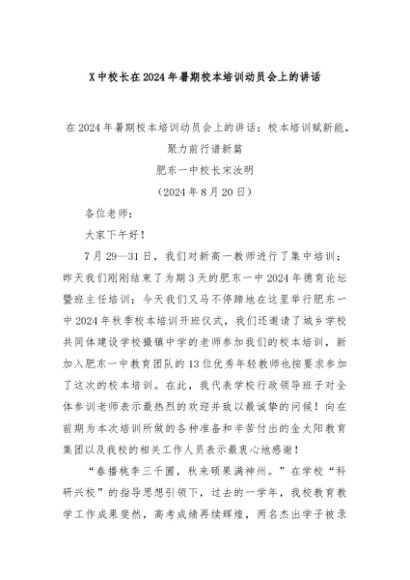 / 【七哥公文】2024年:X中校长在2024年暑期校本培训动员会上的讲话+更多免费公文+VX:QiGeGongWen2024