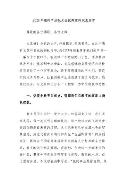 / 【七哥公文】2024年:2024年教师节庆祝大会优秀教师代表发言+更多免费公文+VX:QiGeGongWen2024