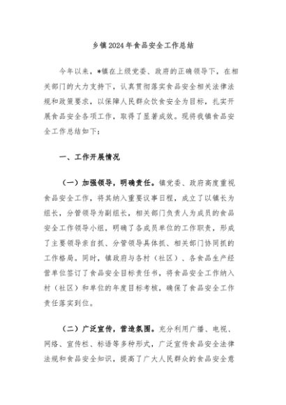 / 【七哥公文】2024年:乡镇2024年食品安全工作总结+更多免费公文+VX:QiGeGongWen2024