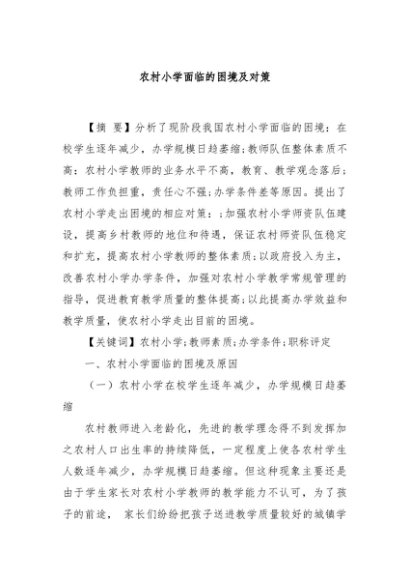 / 【七哥公文】2024年:农村小学面临的困境及对策+更多免费公文+VX:QiGeGongWen2024