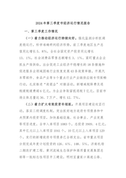 / 【七哥公文】2024年:2024年第三季度市经济运行情况报告+更多免费公文+VX:QiGeGongWen2024