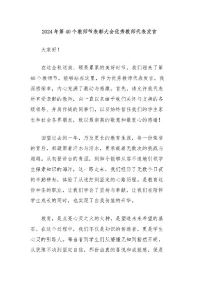/ 【七哥公文】2024年:2024年第40个教师节表彰大会优秀教师代表发言+更多免费公文+VX:QiGeGongWen2024