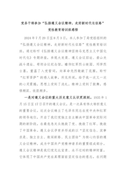 【七哥公文】2024年:党务干部参加“弘扬遵义会议精神,走好新时代长征路”党性教育培训班感悟+更多免费公文+VX:QiGeGongWen2024