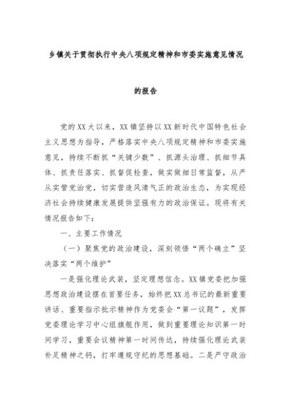 【七哥公文】2024年:乡镇关于贯彻执行中央八项规定精神和市委实施意见情况的报告+更多免费公文+VX:QiGeGongWen2024