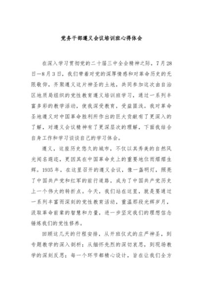 / 【七哥公文】2024年:党务干部遵义会议培训班心得体会+更多免费公文+VX:QiGeGongWen2024