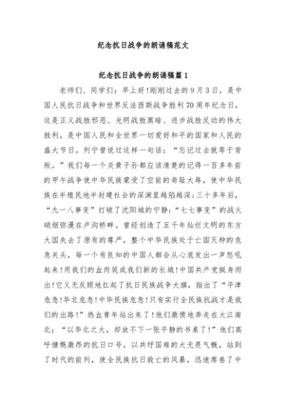 / 【七哥公文】2024年:纪念抗日战争的朗诵稿范文+更多免费公文+VX:QiGeGongWen2024