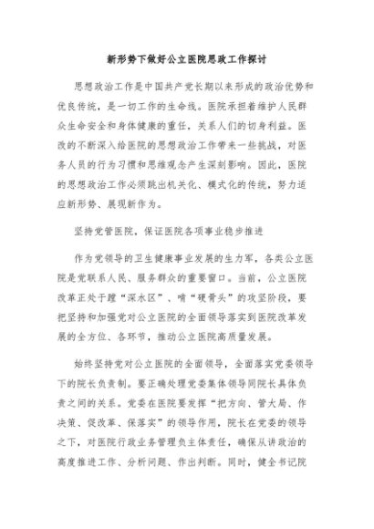 【七哥公文】2024年:新形势下做好公立医院思政工作探讨+更多免费公文+VX:QiGeGongWen2024