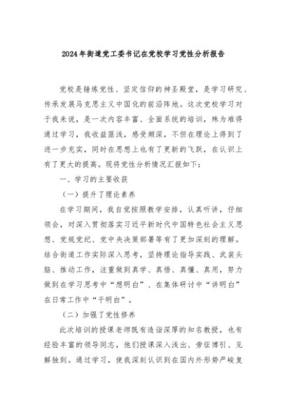 / 【七哥公文】2024年:2024年街道党工委书记在党校学习党性分析报告+更多免费公文+VX:QiGeGongWen2024