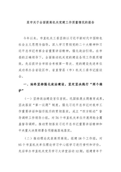 / 【七哥公文】2024年:某市关于全面提高机关党建工作质量情况的报告+更多免费公文+VX:QiGeGongWen2024