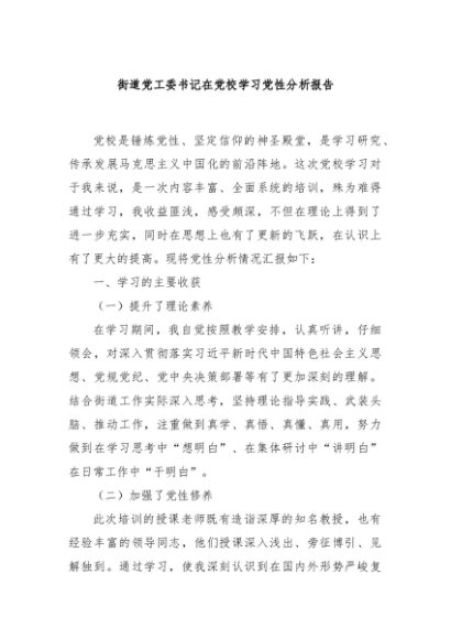 / 【七哥公文】2024年:街道党工委书记在党校学习党性分析报告+更多免费公文+VX:QiGeGongWen2024