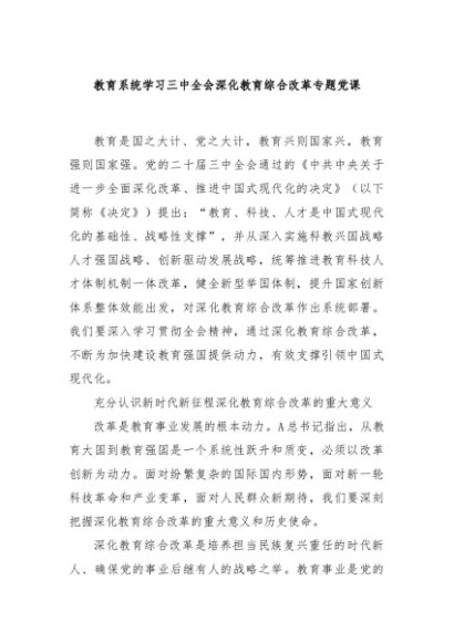 / 【七哥公文】2024年:教育系统学习三中全会深化教育综合改革专题党课+更多免费公文+VX:QiGeGongWen2024