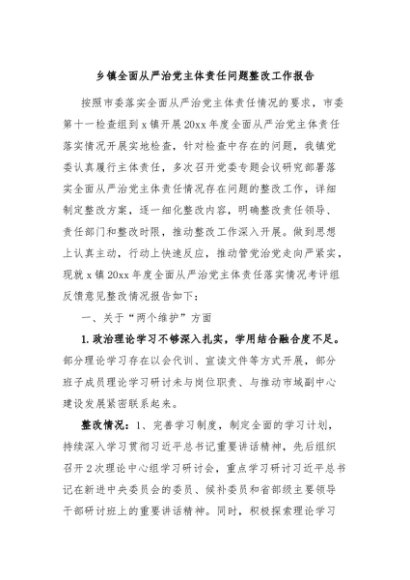 / 【七哥公文】2024年:乡镇全面从严治党主体责任问题整改工作报告+更多免费公文+VX:QiGeGongWen2024