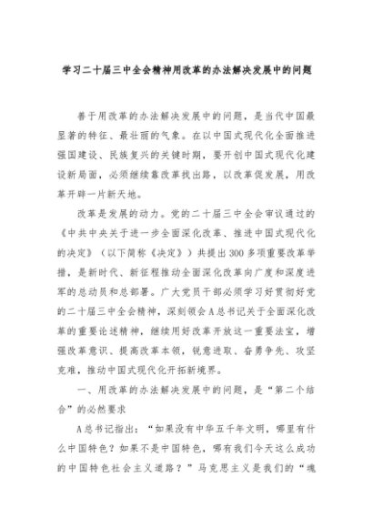 【七哥公文】2024年:学习二十届三中全会精神用改革的办法解决发展中的问题+更多免费公文+VX:QiGeGongWen2024