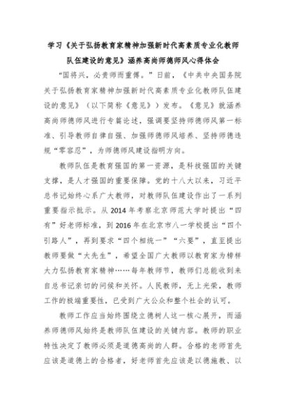 【七哥公文】2024年:学习《关于弘扬教育家精神加强新时代高素质专业化教师队伍建设的意见》涵养高尚师德师风心得体会+更多免费公文+VX:QiGeGongWen2024