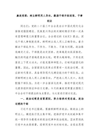 【七哥公文】2024年:廉政党课:树立鲜明用人导向,激励干部开拓进取、干事创业+更多免费公文+VX:QiGeGongWen2024