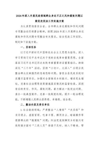 【七哥公文】2024年:2024年深入开展民政领域群众身边不正之风和腐败问题以案促改促治工作实施方案+更多免费公文+VX:QiGeGongWen2024