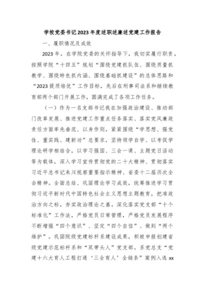 / 【七哥公文】2024年:学校党委书记2023年度述职述廉述党建工作报告+更多免费公文+VX:QiGeGongWen2024