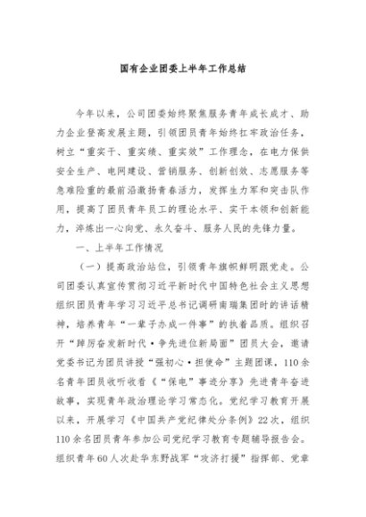 / 【七哥公文】2024年:国有企业团委上半年工作总结+更多免费公文+VX:QiGeGongWen2024