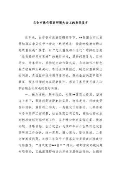 / 【七哥公文】2024年:在全市优化营商环境大会上的典型发言+更多免费公文+VX:QiGeGongWen2024