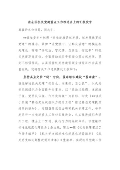 / 【七哥公文】2024年:在全区机关党建重点工作推进会上的汇报发言+更多免费公文+VX:QiGeGongWen2024