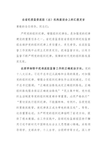 / 【七哥公文】2024年:在省纪委监委派驻(出)机构座谈会上的汇报发言+更多免费公文+VX:QiGeGongWen2024