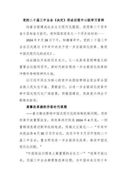 【七哥公文】2024年:党的二十届三中全会《决定》形成过程中心组学习资料+更多免费公文+VX:QiGeGongWen2024