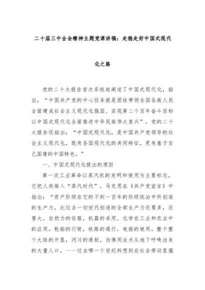 【七哥公文】2024年:二十届三中全会精神主题党课讲稿:走稳走好中国式现代化之路+更多免费公文+VX:QiGeGongWen2024