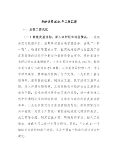 / 【七哥公文】2024年:市统计局2024年工作汇报+更多免费公文+VX:QiGeGongWen2024