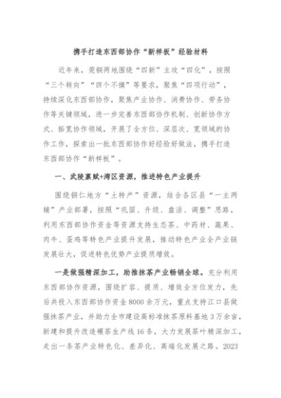 / 【七哥公文】2024年:携手打造东西部协作“新样板”经验材料+更多免费公文+VX:QiGeGongWen2024