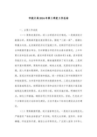 / 【七哥公文】2024年:市统计局2024年第三季度工作总结+更多免费公文+VX:QiGeGongWen2024