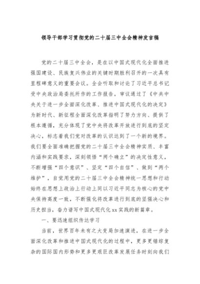 / 【七哥公文】2024年:领导干部学习贯彻党的二十届三中全会精神发言稿+更多免费公文+VX:QiGeGongWen2024