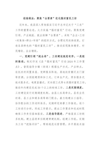 / 【七哥公文】2024年:经验做法:聚焦“全要素”优化强村富民工坊+更多免费公文+VX:QiGeGongWen2024