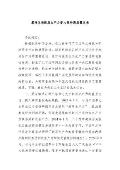 / 【七哥公文】2024年:坚持发展新质生产力着力推动高质量发展+更多免费公文+VX:QiGeGongWen2024