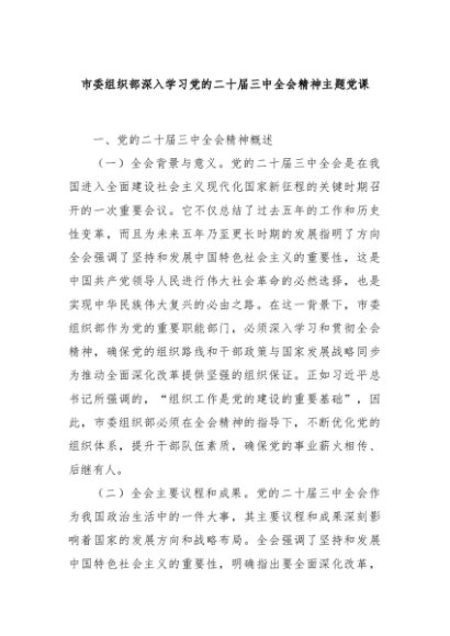/ 【七哥公文】2024年:市委组织部深入学习党的二十届三中全会精神主题党课+更多免费公文+VX:QiGeGongWen2024