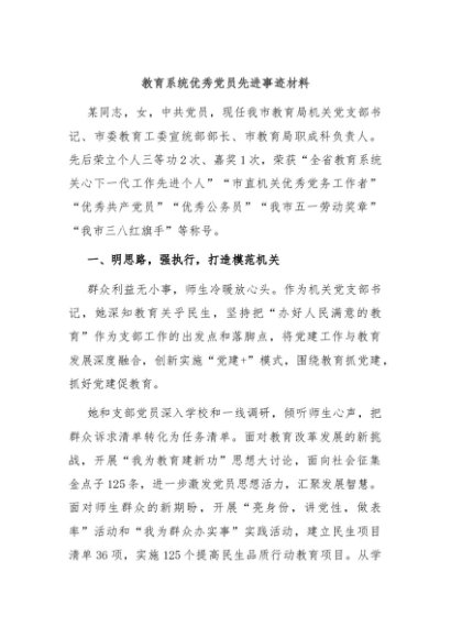 / 【七哥公文】2024年:教育系统优秀党员先进事迹材料+更多免费公文+VX:QiGeGongWen2024