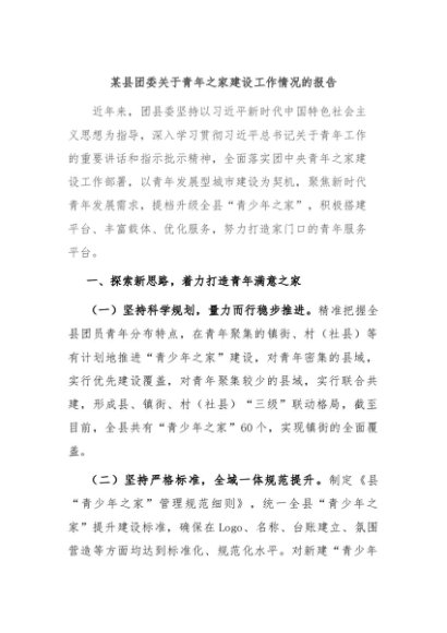 / 【七哥公文】2024年:某县团委关于青年之家建设工作情况的报告+更多免费公文+VX:QiGeGongWen2024