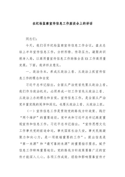 / 【七哥公文】2024年:在纪检监察宣传信息工作座谈会上的讲话+更多免费公文+VX:QiGeGongWen2024
